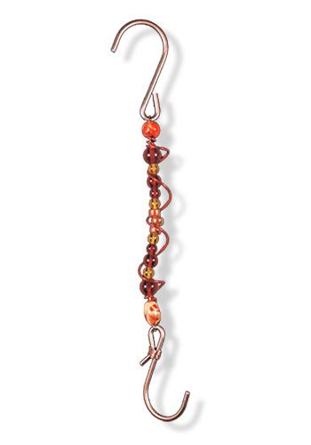 Material: Copper plated steel hooks, glass beads, color coated copper wire, wood beads, monofiliment